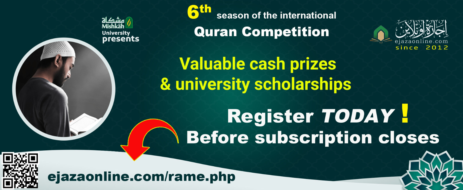 Register today for our 6 annual International Quran Competition hosted by our Ejazaonline program. Winners will valuable cash prizes and scholarships to our Ejazaonline courses.