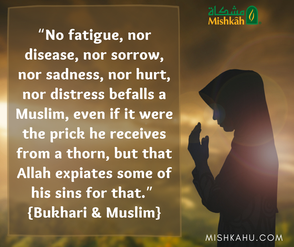 - Reward: Remember, The Prophet (saw) said, “No fatigue, nor disease, nor sorrow, nor sadness, nor hurt, nor distress befalls a Muslim, even if it were the prick he receives from a thorn, but that Allah expiates some of his sins for that.” {Bukhari & Muslim}